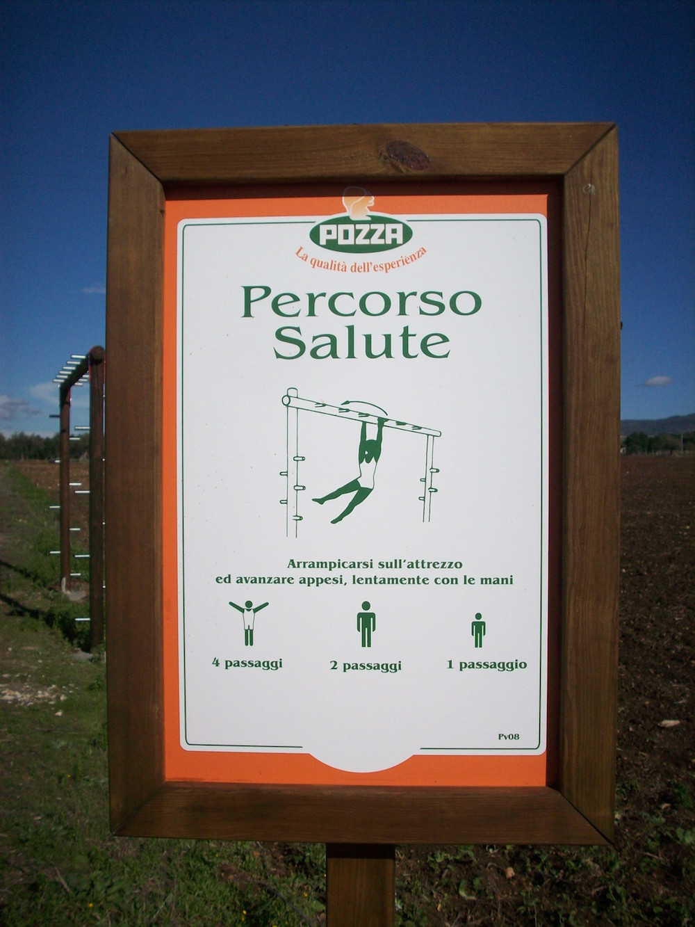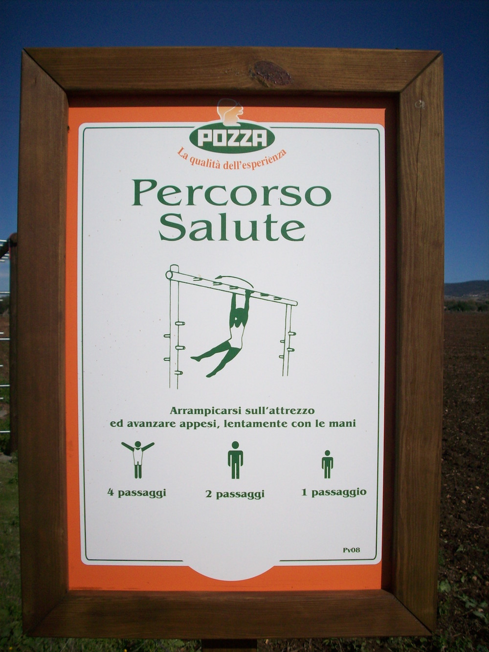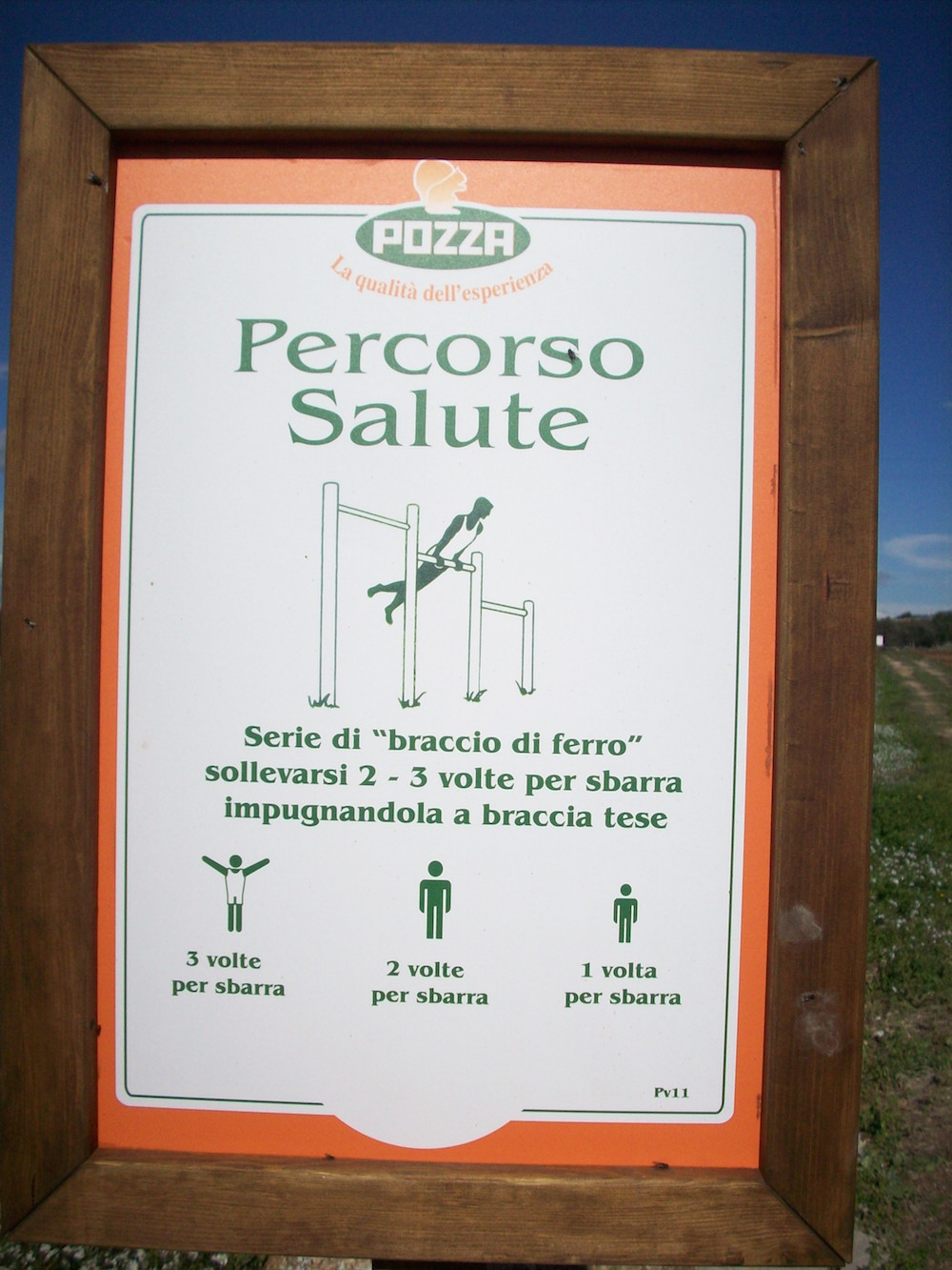 Il percorso della salute prevede un tratto di percorso per eseguire esercizi fisici, a corpo libero o con attrezzi che spiegano come svolgere gli esercizi in piena libertà ed autonomia