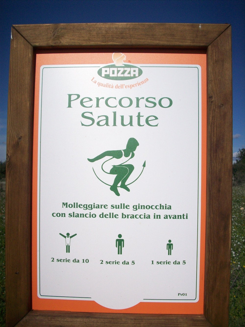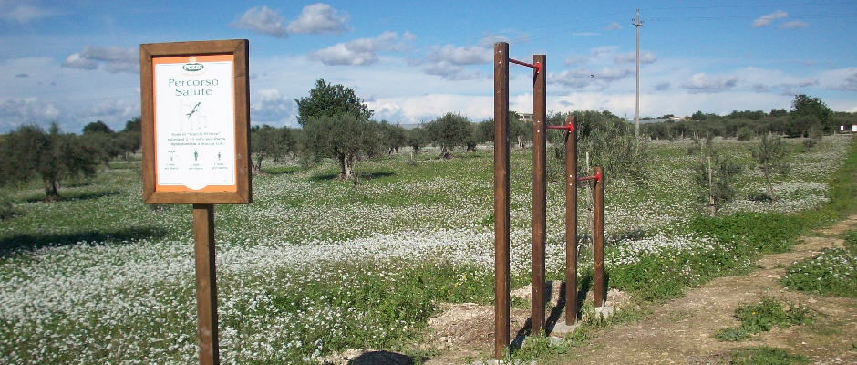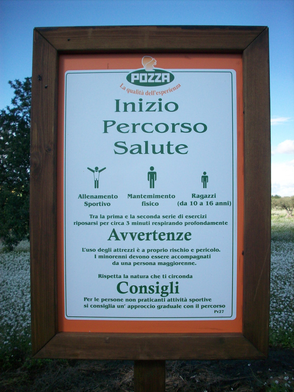 Il percorso della salute prevede un tratto di percorso per eseguire esercizi fisici, a corpo libero o con attrezzi che spiegano come svolgere gli esercizi in piena libertà ed autonomia